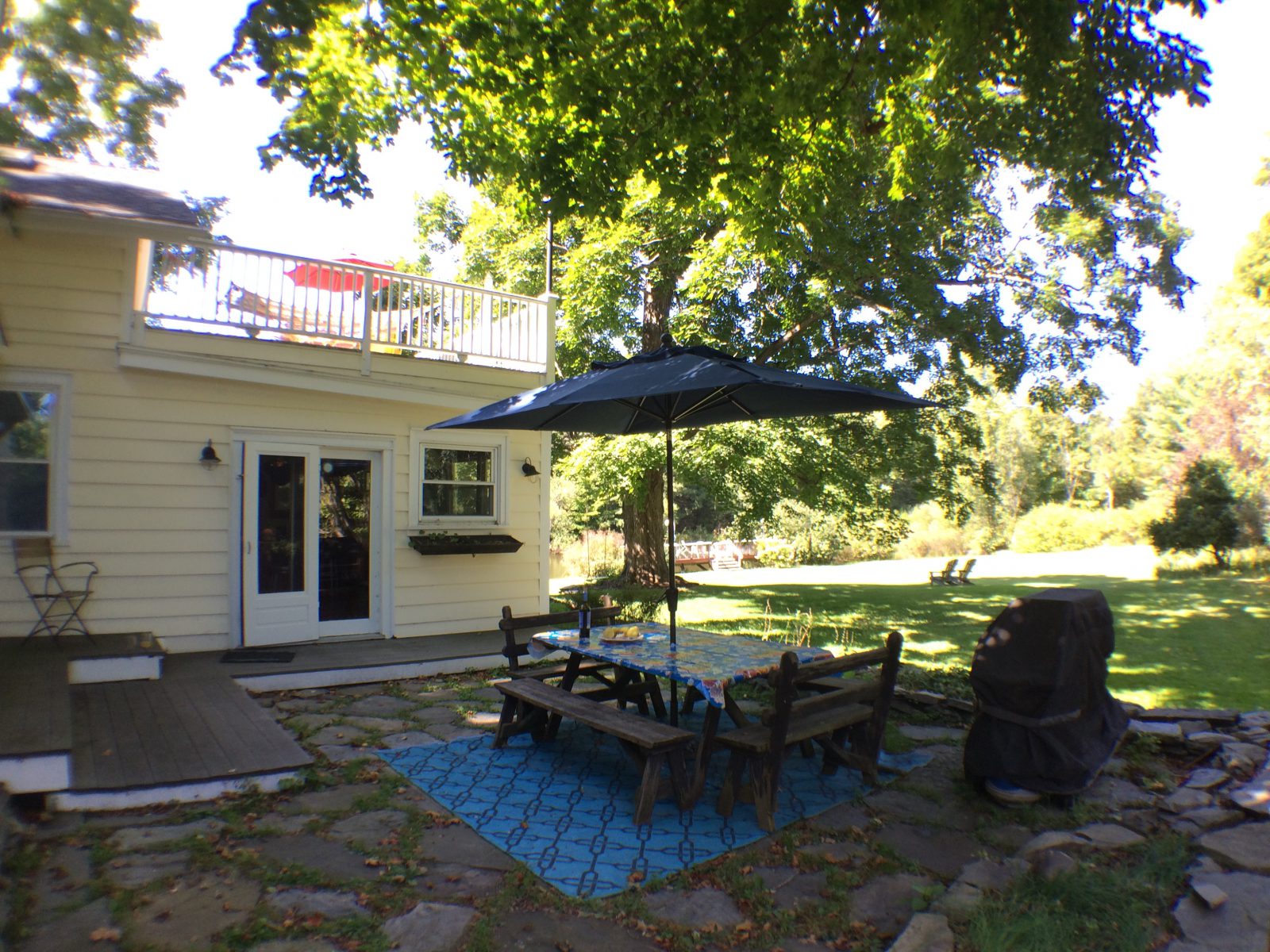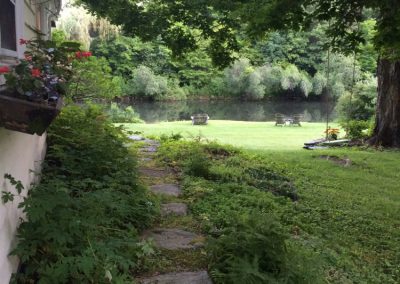 Along the kitchen to the pond.