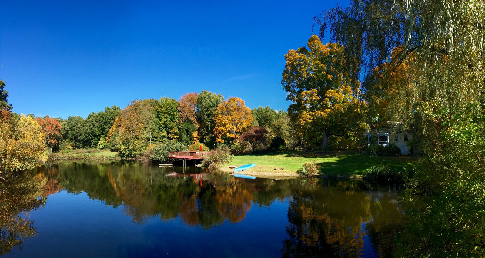 The pond is still swimmable even as the trees turn golden.